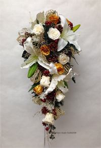 プリザーブドフラワーの白いガーデンローズと中輪咲きのピュアホワイトのバラを