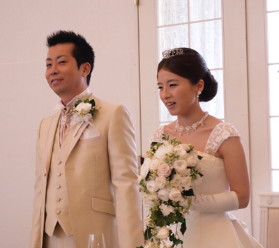 今度は、白いウエディングに お色直し用のヘアオーナメントと リストレットをつけて またまたイメージチェンジです。